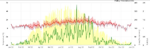 Data van weerstation op Golfclub 't Zelle (bron: Marco Blom, 2023). Klik op het beeld voor een grotere afbeelding.