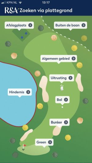 - Wijs spelers ook op het onderdeel ‘Zoeken via plattegrond’ in de regelapp van de R&A. Bij een regelkwestie in een wedstrijd mag een speler deze app raadplegen. ‘Zoeken via plattegrond’ leidt een speler heel snel naar het antwoord op zijn of haar regelvraag.